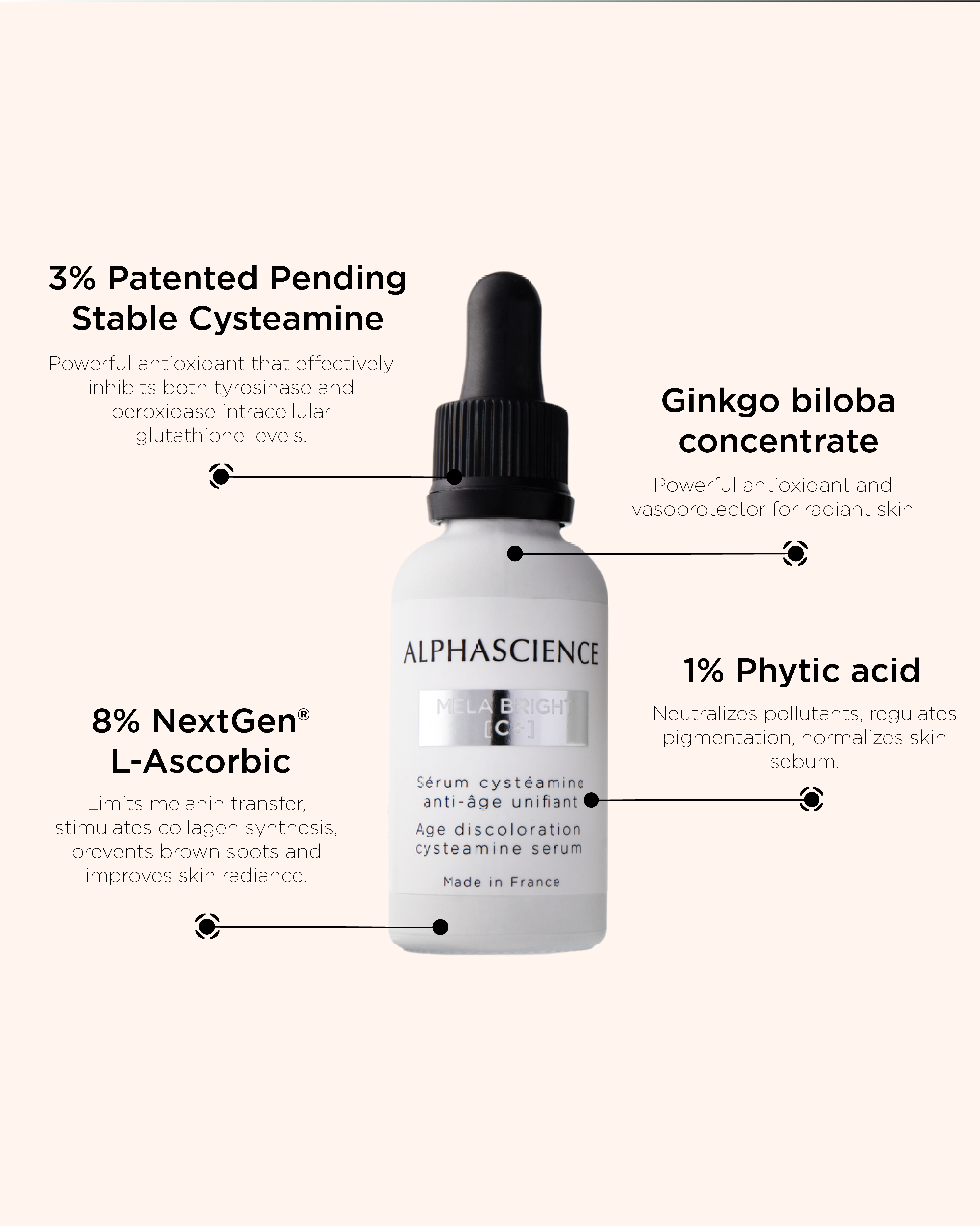 メラブライト[C+]は、安定型システアミンを配合した初の美容液です。